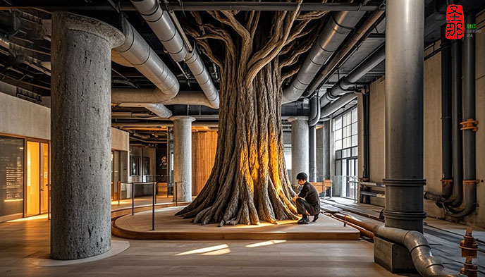 項(xiàng)目描述:用仿真樹裝飾立柱,既解決了柱子裝飾問題又創(chuàng)造出了高仿真的自然環(huán)境,讓員工在綠意盎然的環(huán)境中工作,心情愉悅。