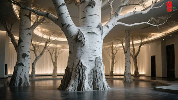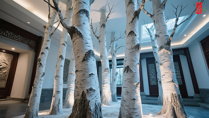為北京博雅會所制作的高端仿真白樺樹