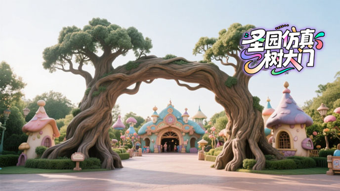 北京廠家仿真樹大門制作設(shè)計與實際施工對比照片