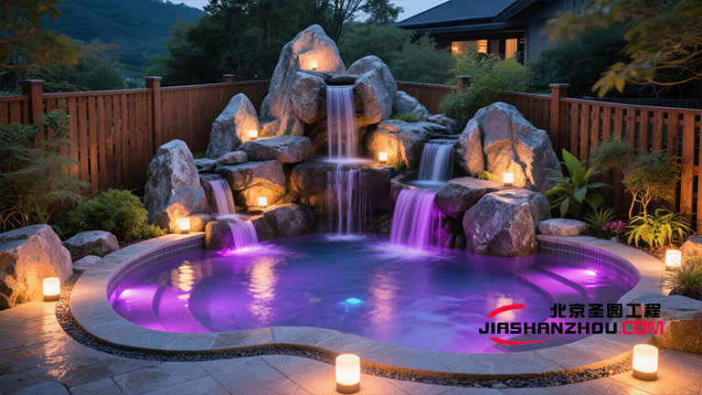 1、塑石假山的靜謐美景,原生態的塑石假山自然f 光