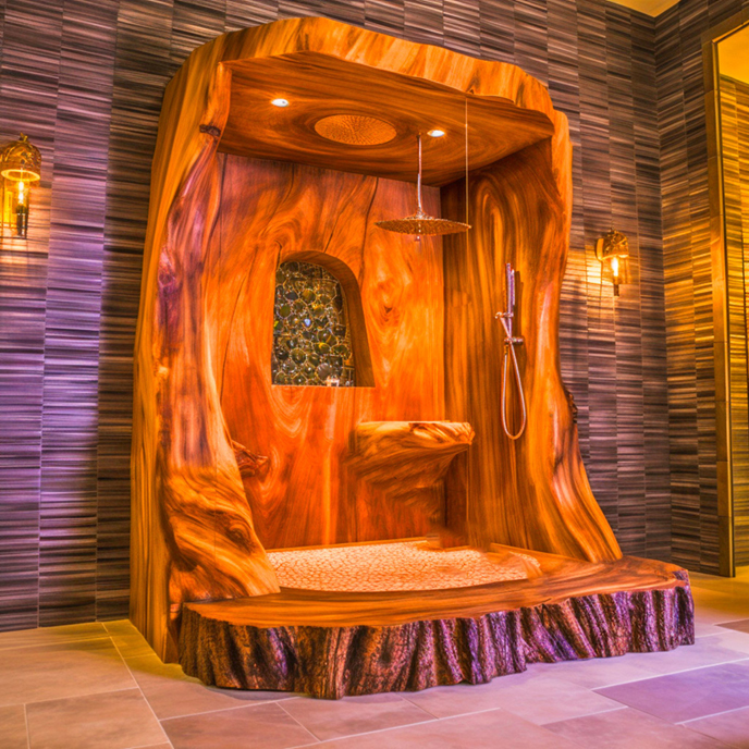 民宿仿木淋浴室的優點是仿佛在野外瀟灑